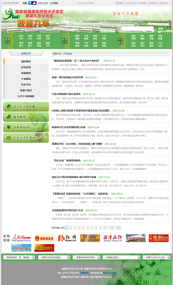 投資九華的主要欄目有:園區概況、產業聚焦、招商信息、人力資源、發展規劃、產經新聞、投資指南和創新創業。